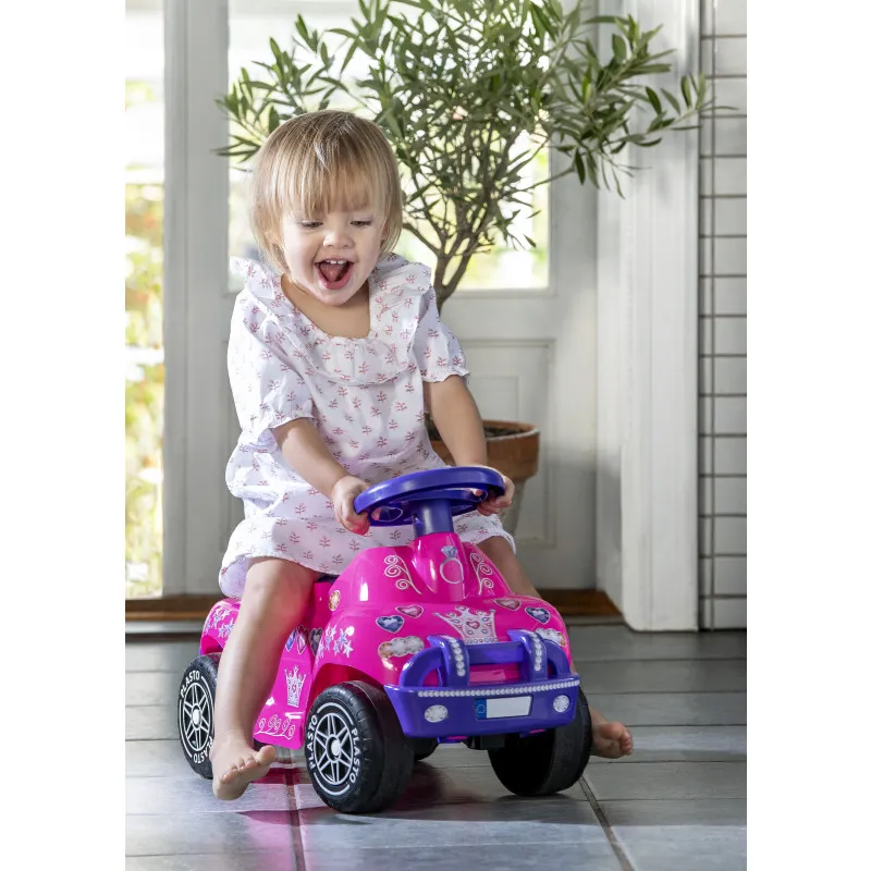 Plasto Offroad - это стильный транспорт для каждой маленькой принцессы! Розовый автомобиль с тихими колесами, идеально подходящий для использования внутри помещений. Под сиденьем имеется отсек для хранения, в котором можно удобно перевозить необходимые вещи.