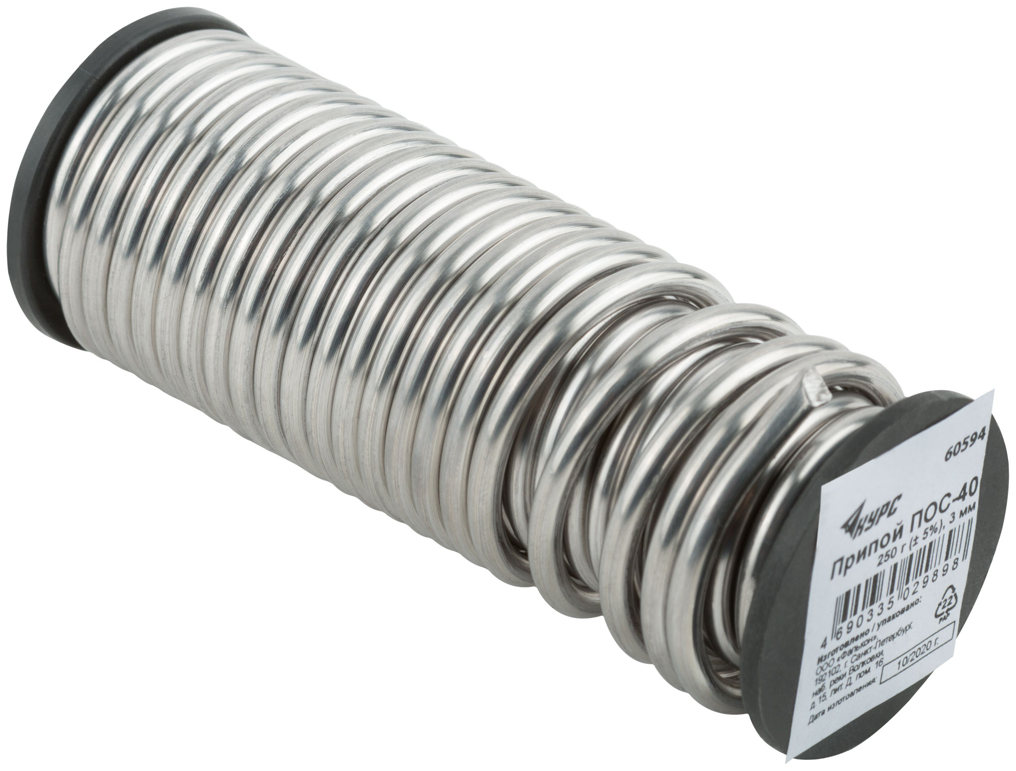 Припой представлен в виде проволоки диаметром 3 мм на удобной катушке, что облегчает его использование и хранение. Состав включает канифоль, что улучшает качество пайки и уменьшает необходимость в дополнительных флюсах.