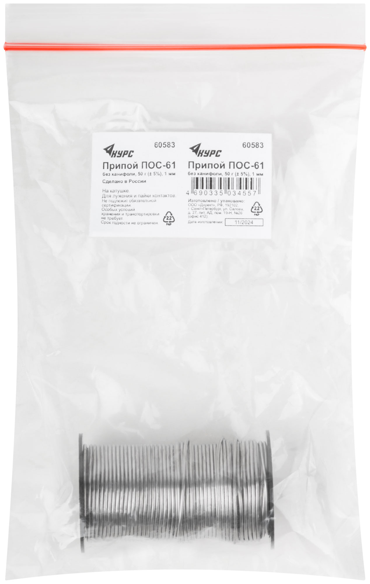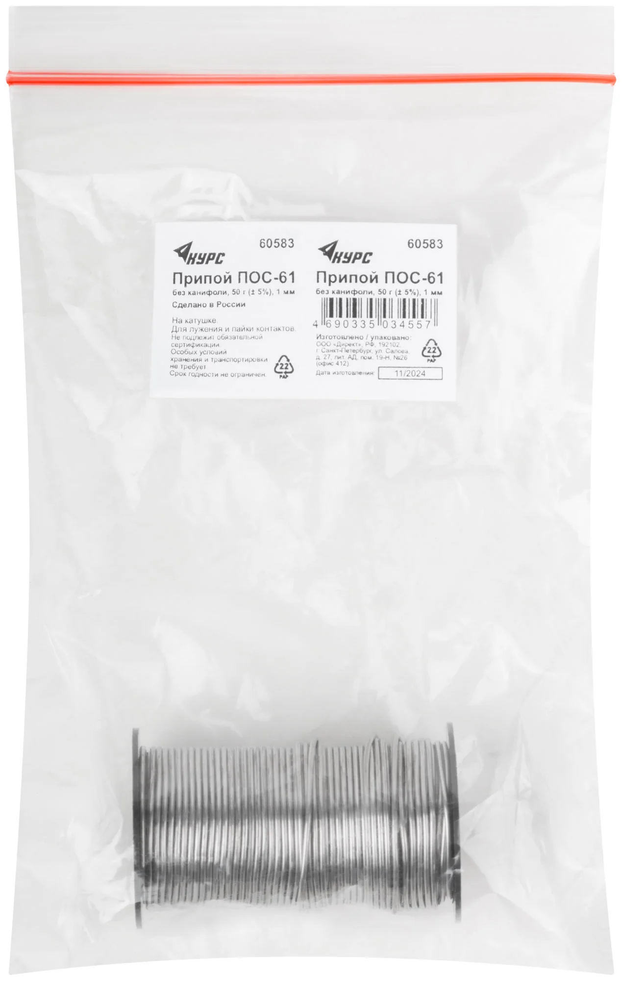 Припой ПОС 61 поставляется на удобной катушке, что упрощает его использование и хранение. Он не содержит канифоли, что делает его более экологичным и безопасным для использования в помещениях с недостаточной вентиляцией.