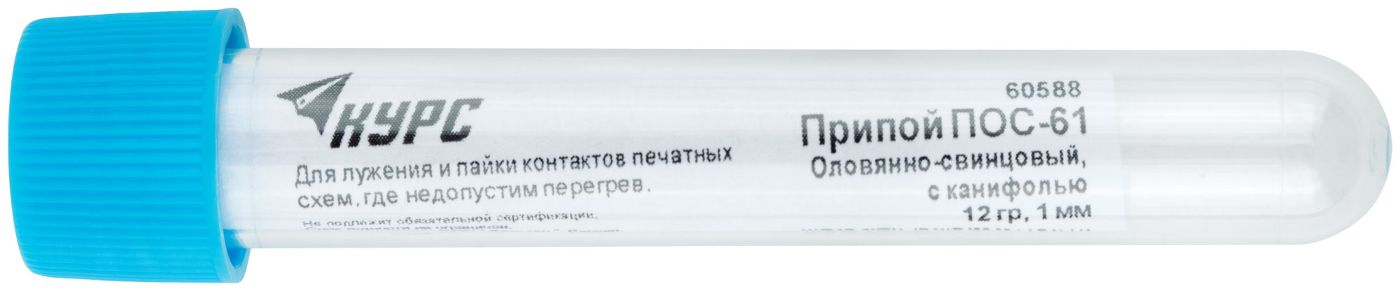 Туба содержит 12 грамм припоя в виде проволоки диаметром 1 мм. Это удобный формат для хранения и использования, обеспечивающий чистоту и аккуратность рабочего места.