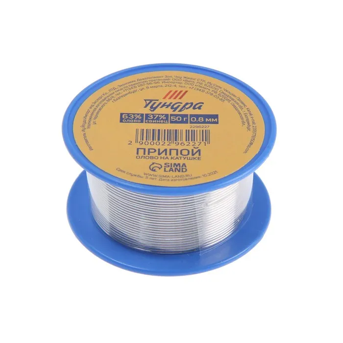 Припой ТУНДРА, ПОС 63, на катушке, 0.8 мм, 50 г — Характеристики