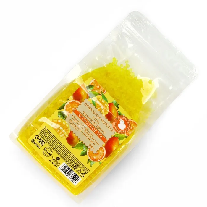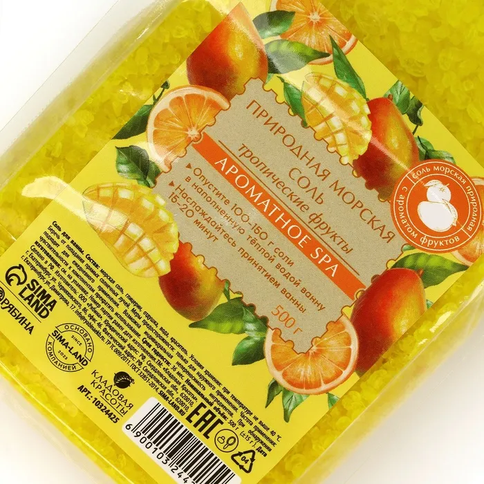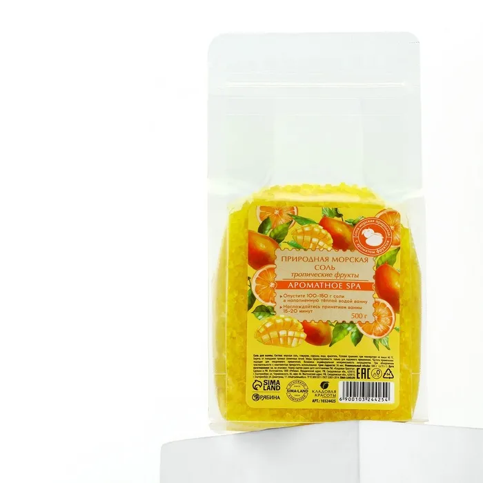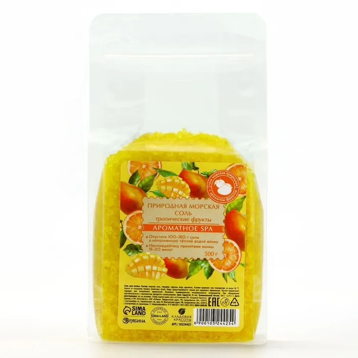 Природная морская соль для ванны, 500 г, аромат тропических фруктов, КЛАДОВАЯ КРАСОТЫ — Характеристики