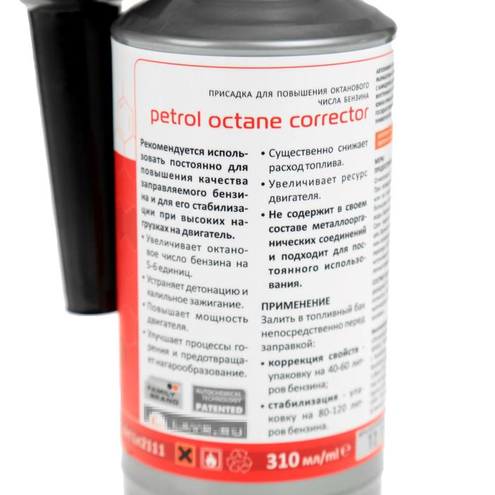 Октаноповышающая присадка в бензин. Рекомендуется при заправке низкосортным топливом и для стабилизации бензина при высоких нагрузках на двигатель.