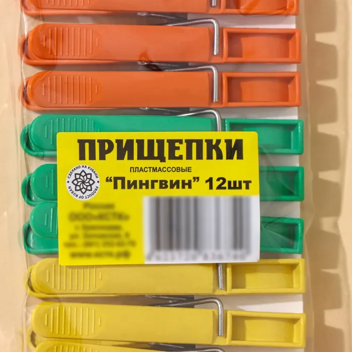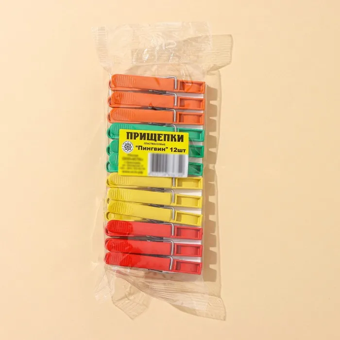 Прищепки бельевые «Пингвин», 8 см, 12 шт, цвет МИКС — Характеристики