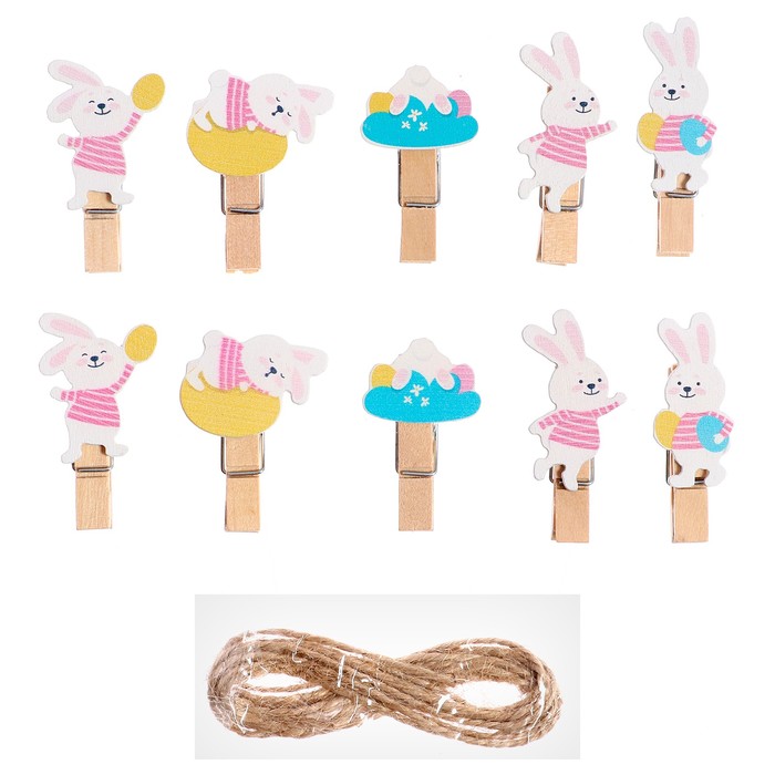 Прищепки декоративные с веревкой для подвеса «Вдохновение» набор 10 шт.