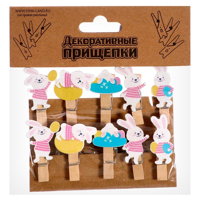 Прищепки декоративные на пасху «Зайчики» набор 10 шт., 1.5×12×14 см