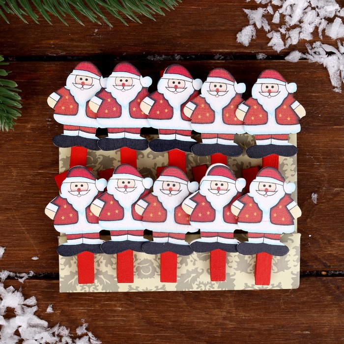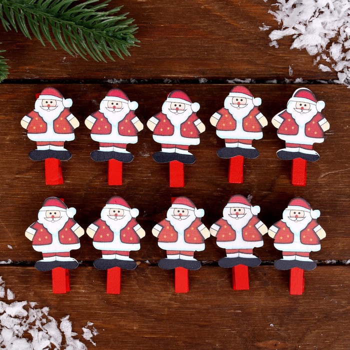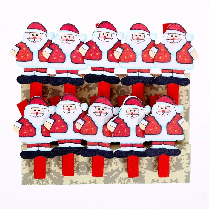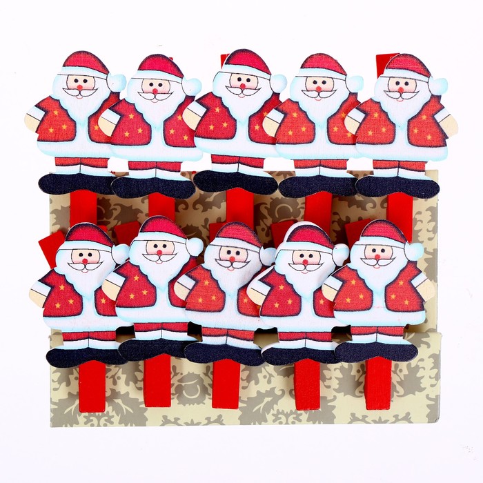 Прищепки декоративные новогодние «Дед Мороз», набор 10 штук — Характеристики