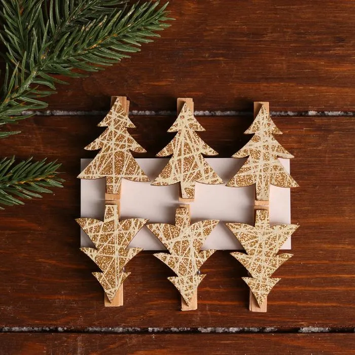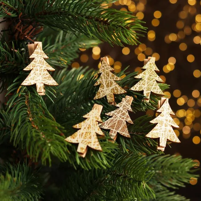 Прищепки декоративные новогодние «Елочки», с подсветкой, 12×8 см, набор 6 шт. — Характеристики