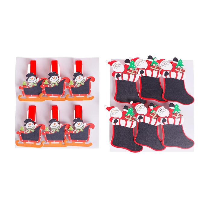 Прищепки декоративные новогодние «Сказка», набор 6 шт. МИКС — Характеристики