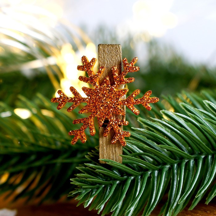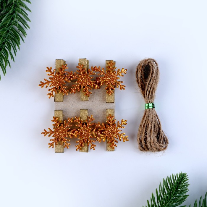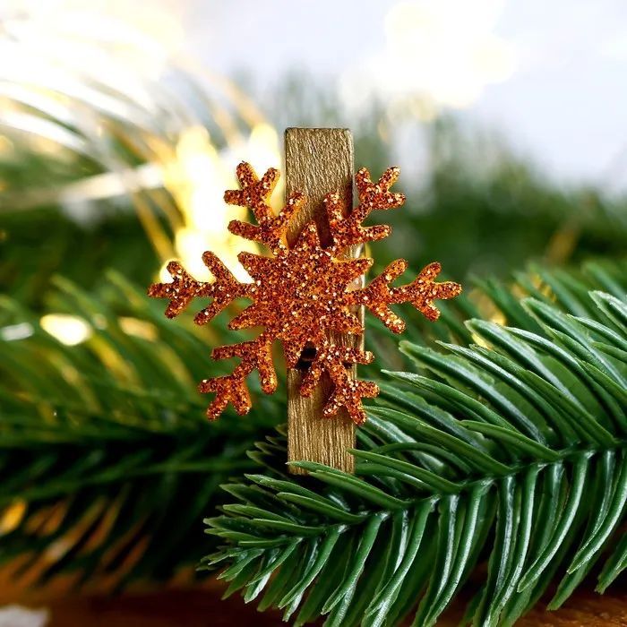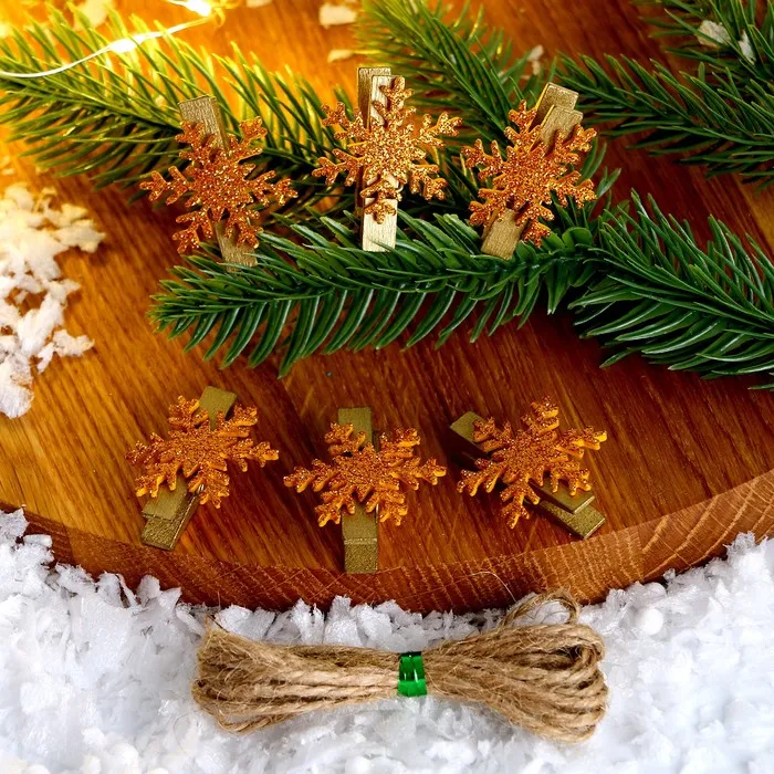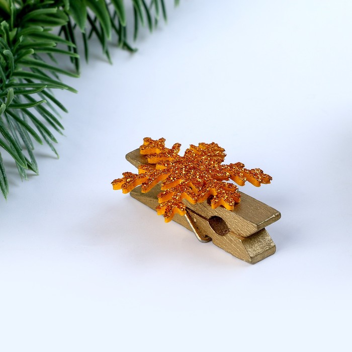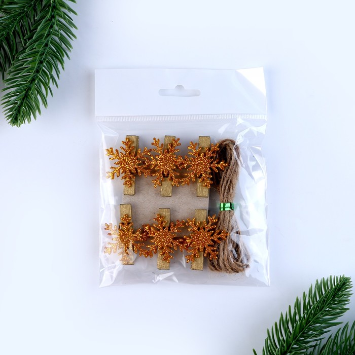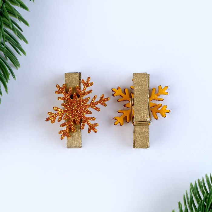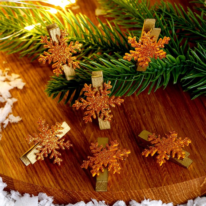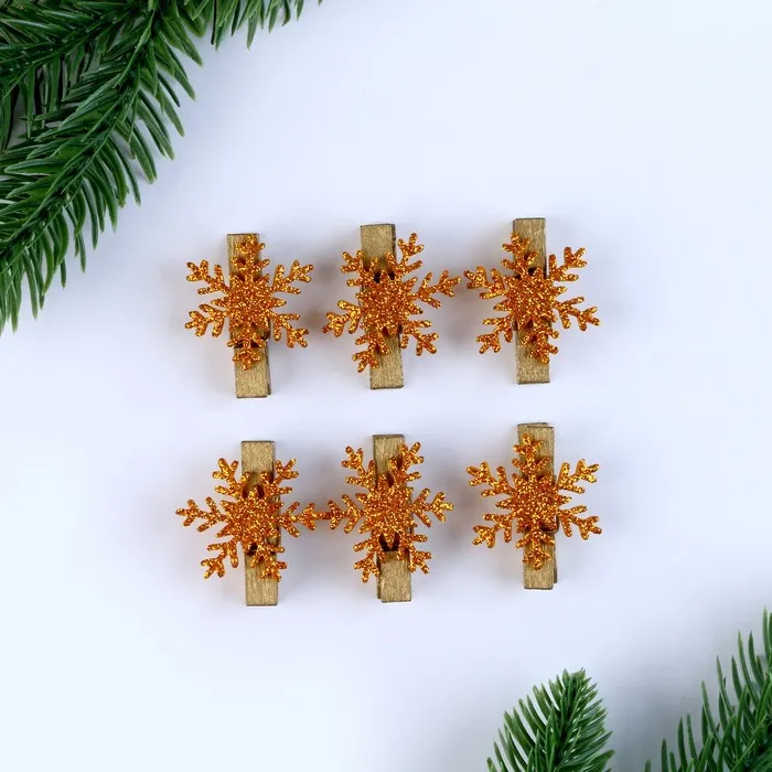 Прищепки декоративные новогодние «Снежинки» золотые, 6 шт. — Характеристики