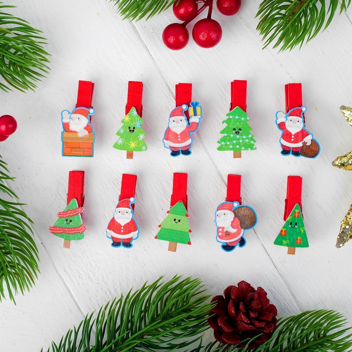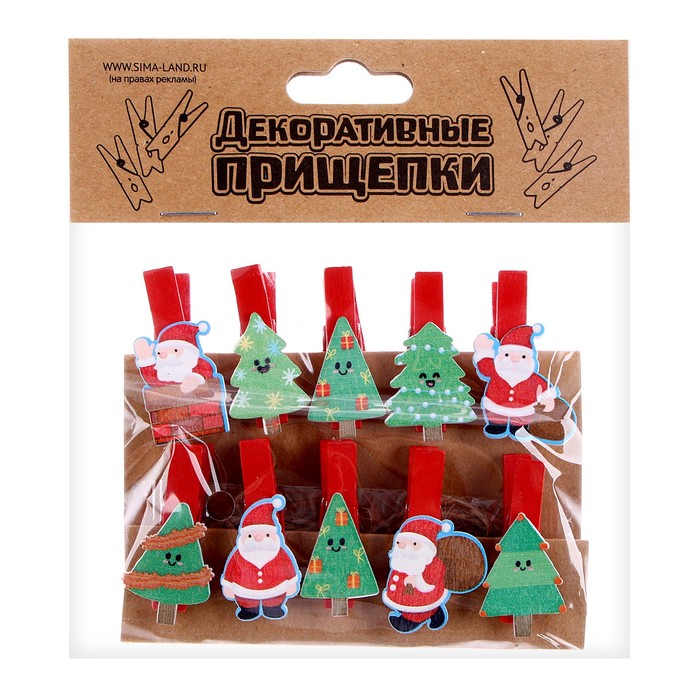 Прищепки декоративные «Новый год», 10 шт., верёвка — 100 см — Характеристики