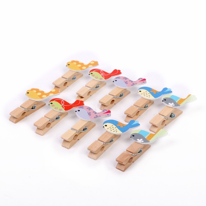 Прищепки декоративные с веревкой для подвеса «Весенние птички» набор 10 шт. — Характеристики