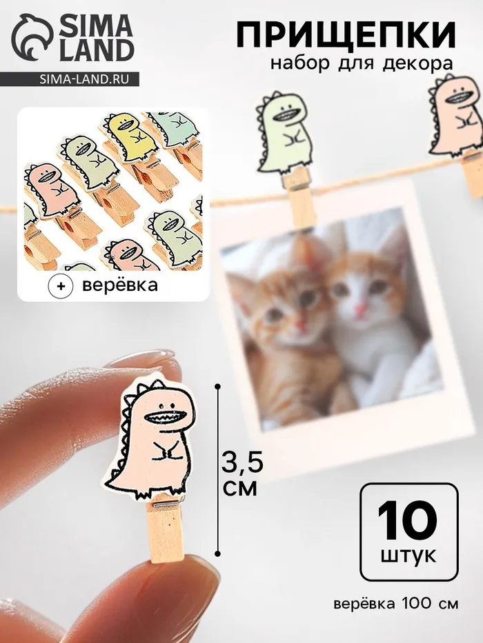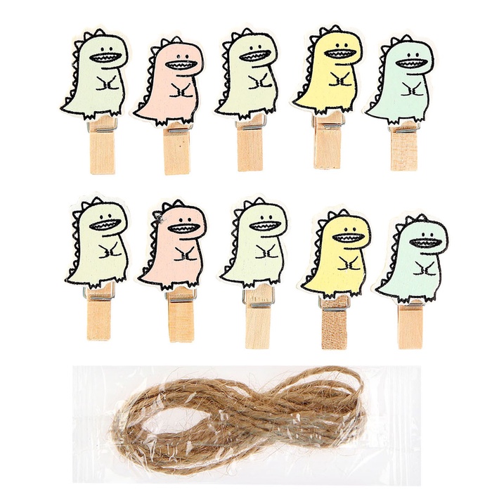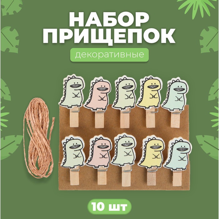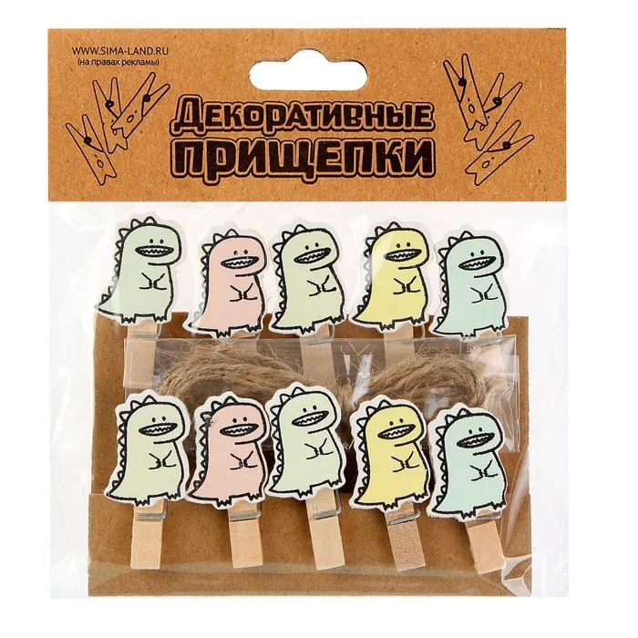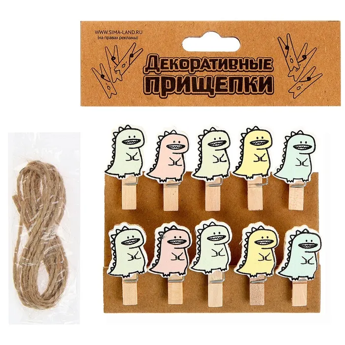 Прищепки декоративные с верёвкой для подвеса «Дракоши» набор 10 шт., 1,5 × 12 × 14 см — Характеристики