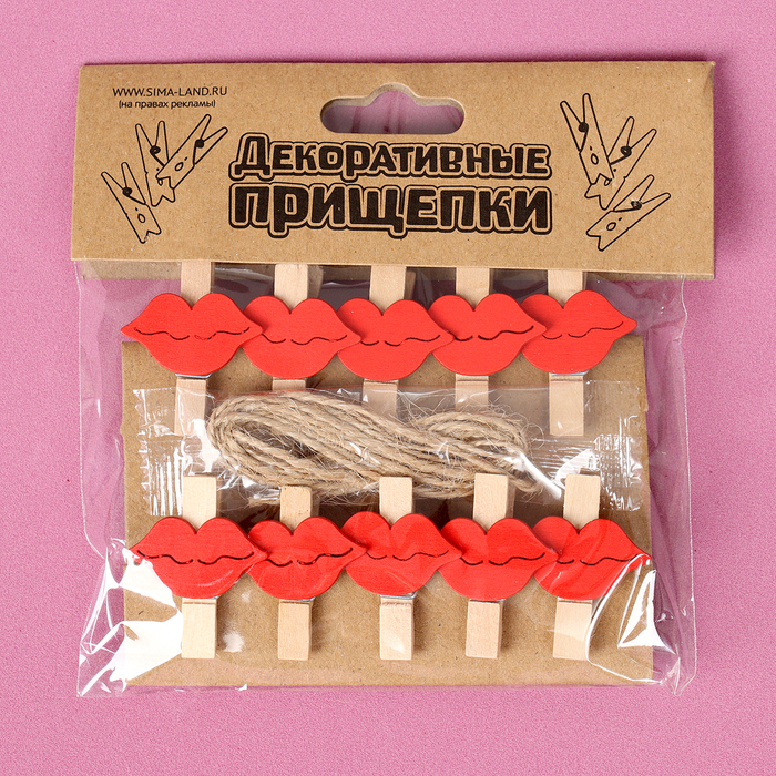 Прищепки декоративные «Новый год», 10 шт., верёвка — 100 см