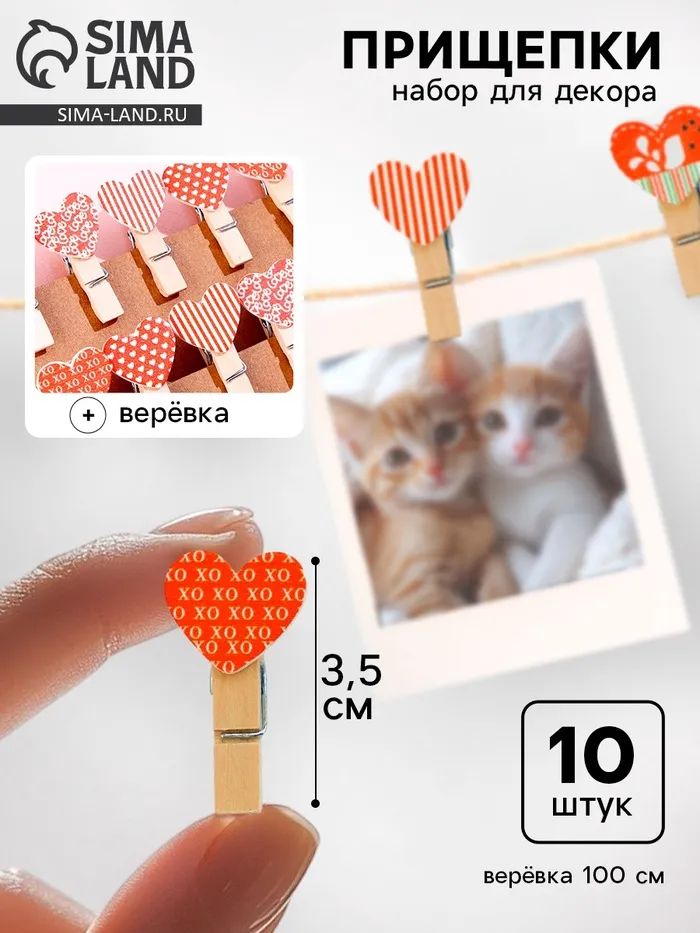 Прищепки декоративные «Сердечки» набор 10 шт. — Характеристики