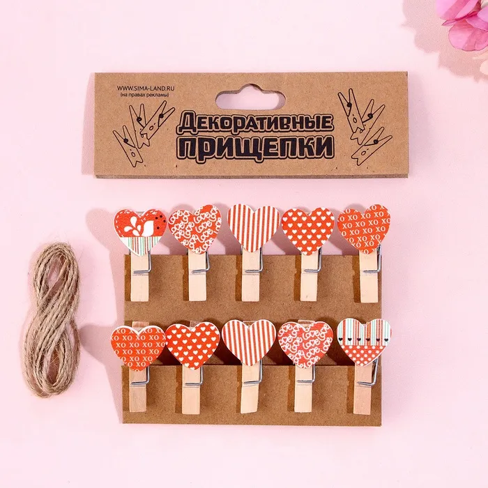 Прищепки декоративные «Сердечки» набор 10 шт.