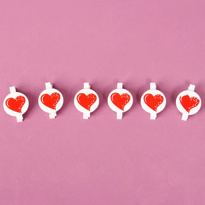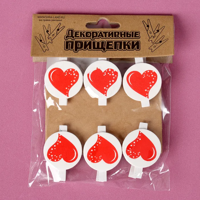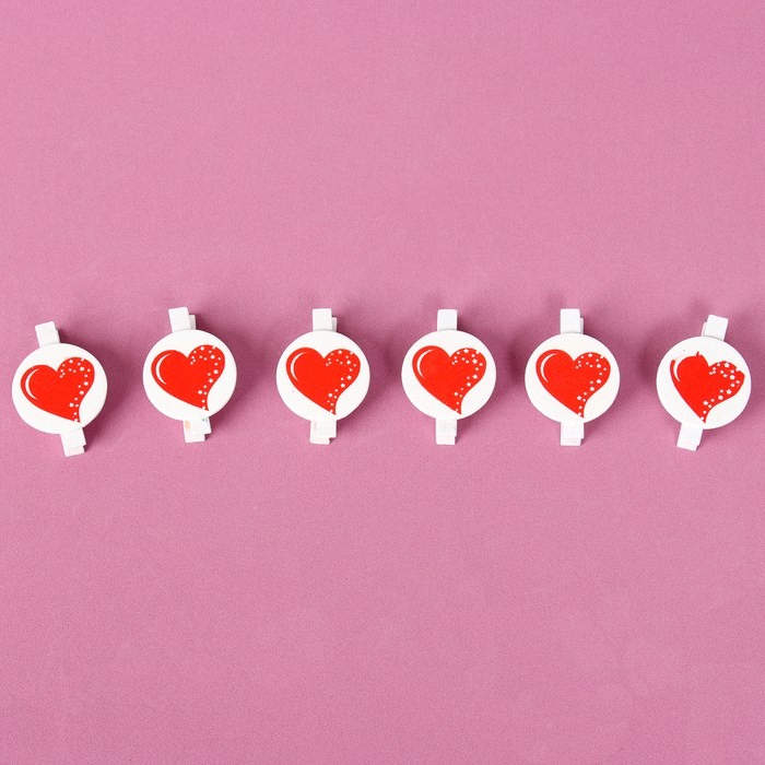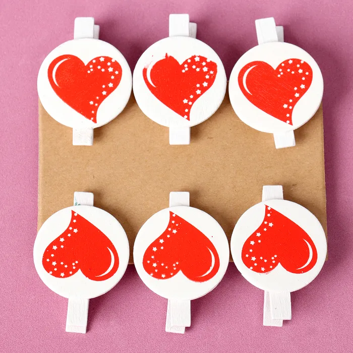 Прищепки декоративные «Сердечки» набор 6 шт., 2 × 11,5 × 16 см