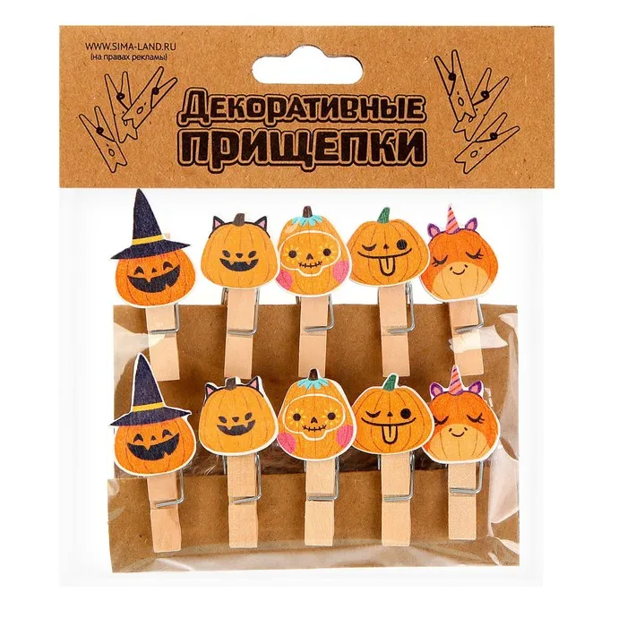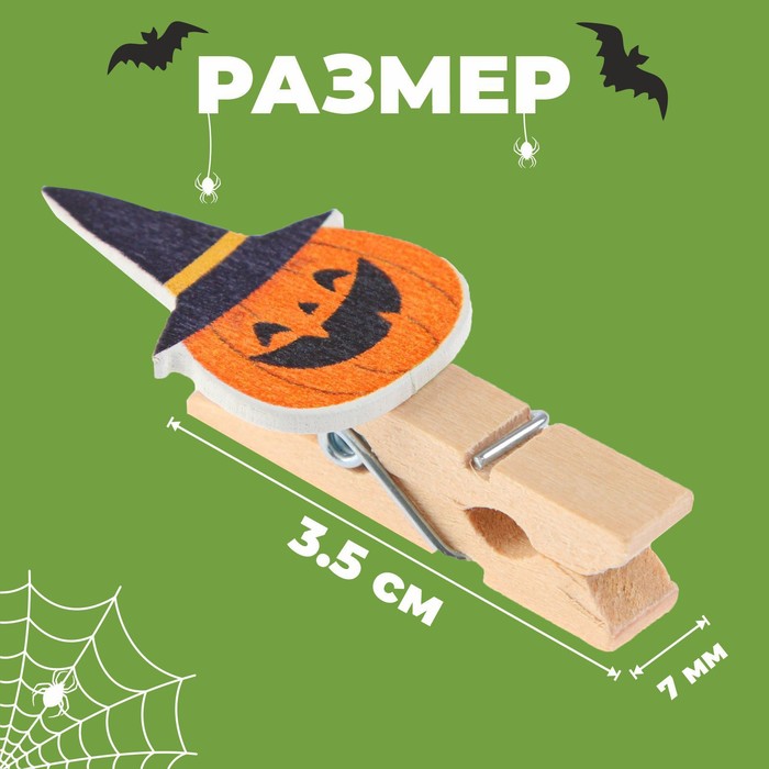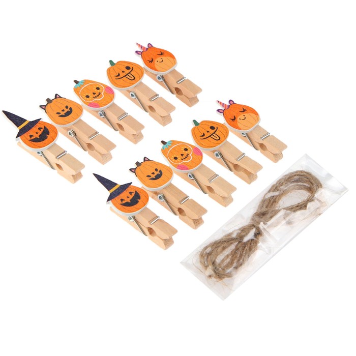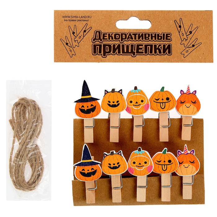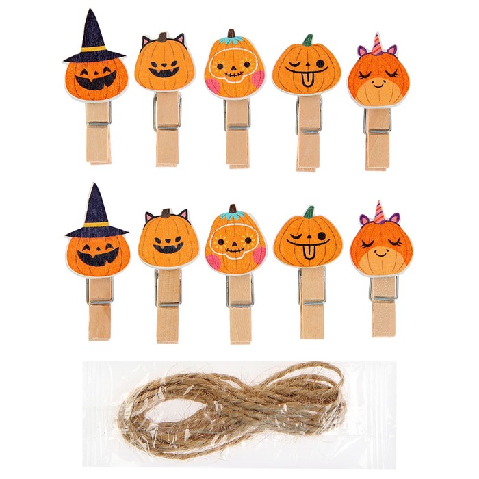 Прищепки декоративные «Тыковки на хэллоуин», набор 10 шт., с верёвкой для подвеса, 1,5 × 12 × 14 см — Характеристики