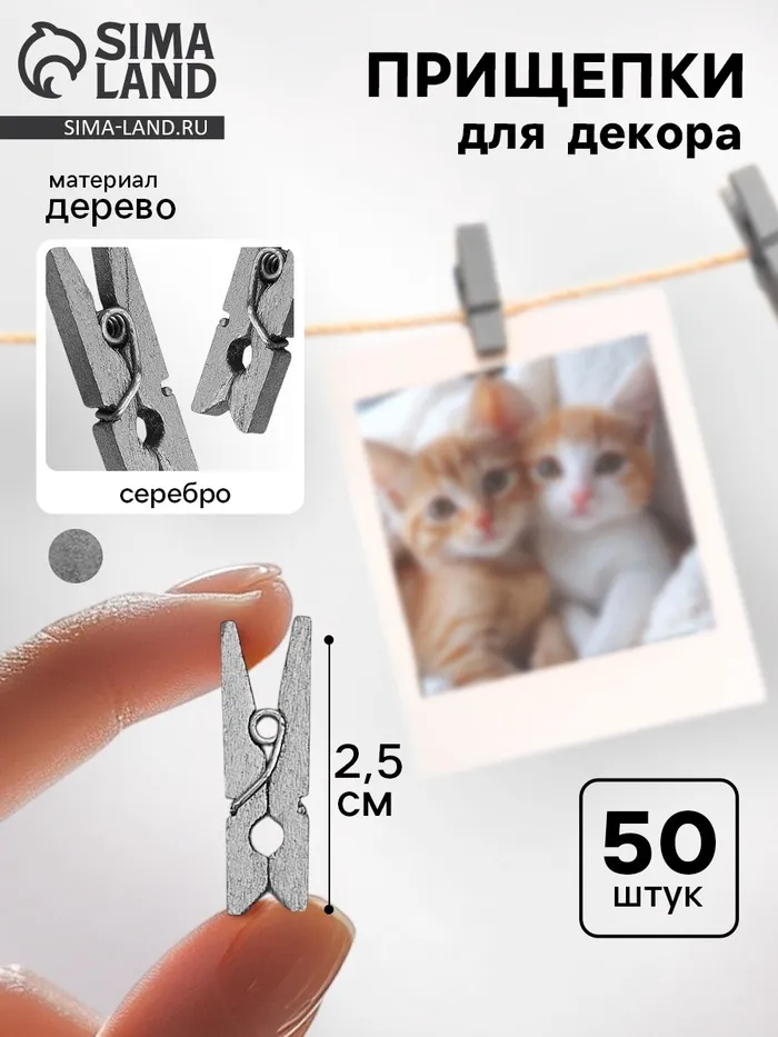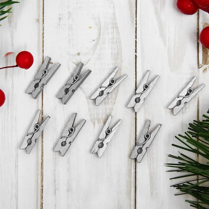 Прищепки декоративные в серебре, 50 шт., размер: 2,5 см — Характеристики