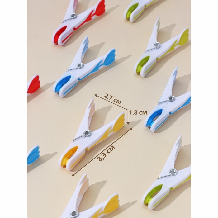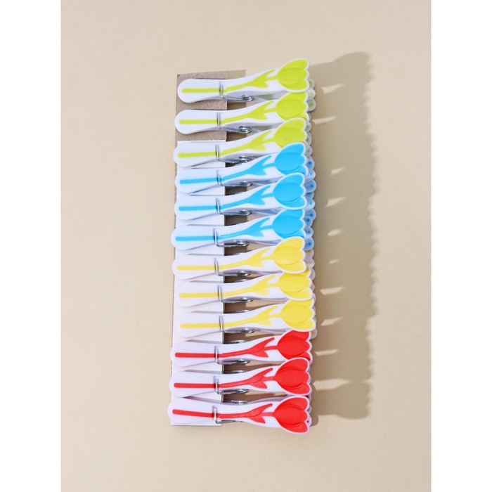 Прищепки для белья «Тюльпаны», 8.3×3.8×2.1 см, 12 шт., МИКС — Характеристики