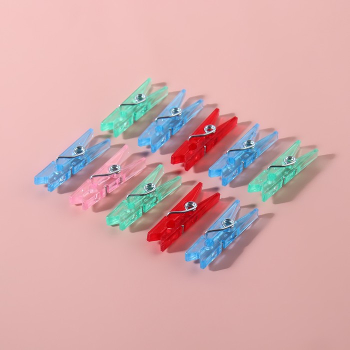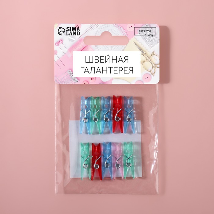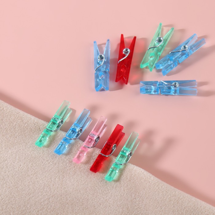 В наборе 10 разноцветных прищепок. Обратите внимание, цвет товара «микс». Это значит, что при заказе вы не выбираете конкретный цвет изделия. На фотографиях могут быть представлены не все варианты.