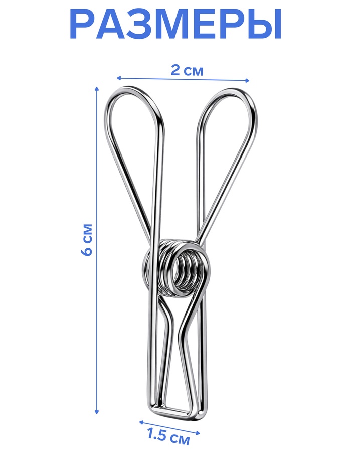 Прищепки из нержавеющей стали, 10 шт. 6×1.5×2, цвет хром — Характеристики