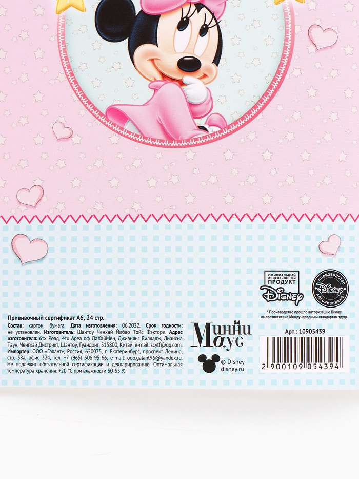 Прививочный сертификат А6, 24 стр "Минни Маус" — Характеристики