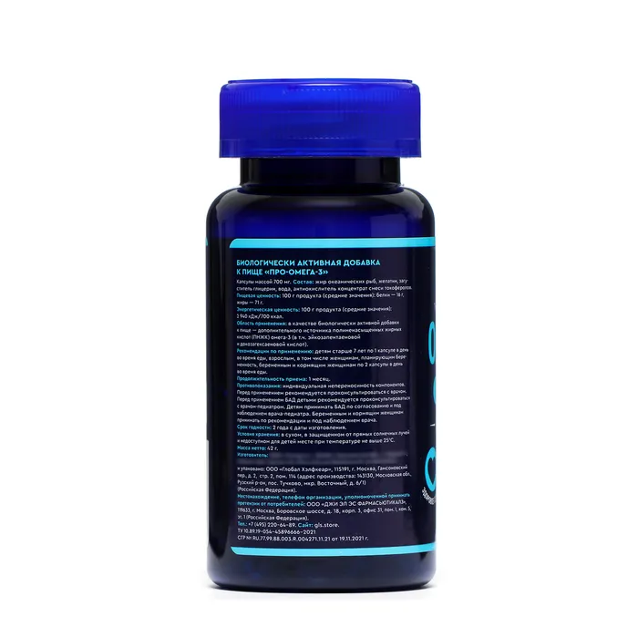 Каждая капсула содержит 700 мг омега-3 жирных кислот, которые помогают снизить уровень холестерина в крови, улучшить работу сердца и мозга, а также способствуют укреплению иммунной системы.