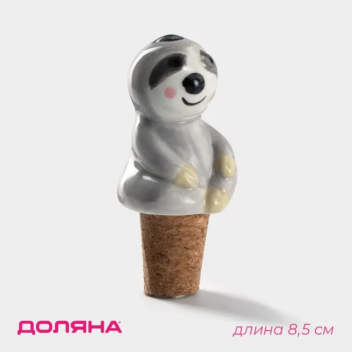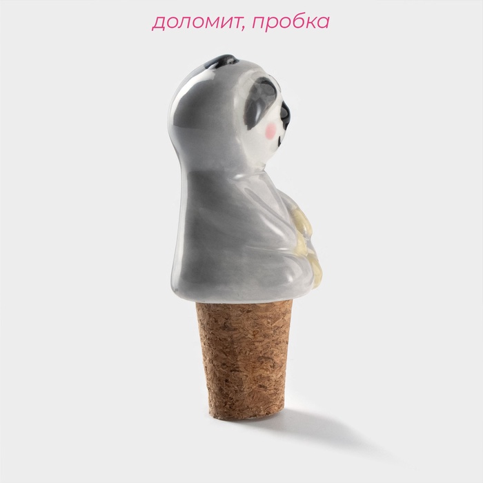 Пробка для бутылки Доляна «Ленивец», 4.5×8.5 см, доломит, серая — Характеристики