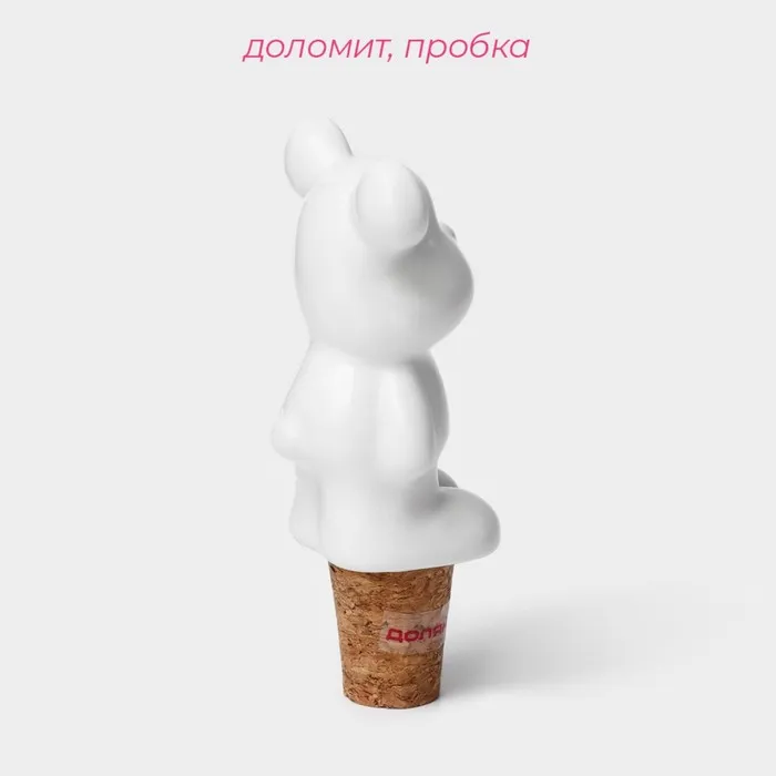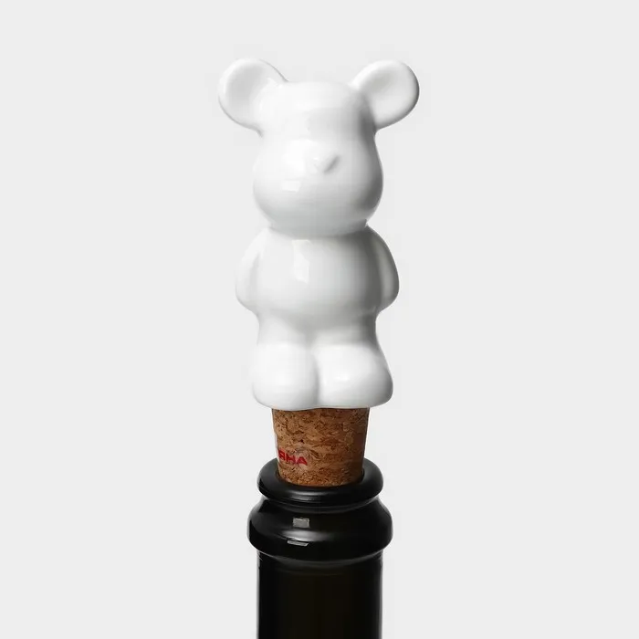 Пробка для бутылки Доляна «Стильный мишка», 3.5×3.5×10 см, белая — Характеристики