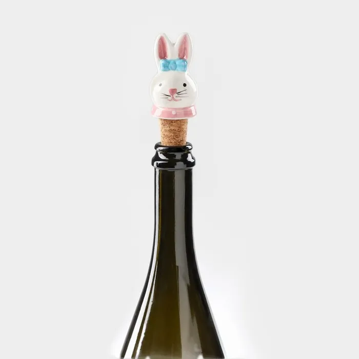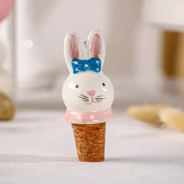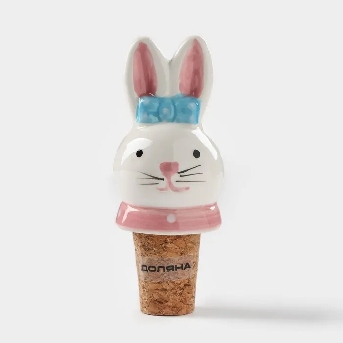 Пробка для бутылки Доляна «Зайка с бантиком», 3.5×9 см, доломит, белая — Характеристики