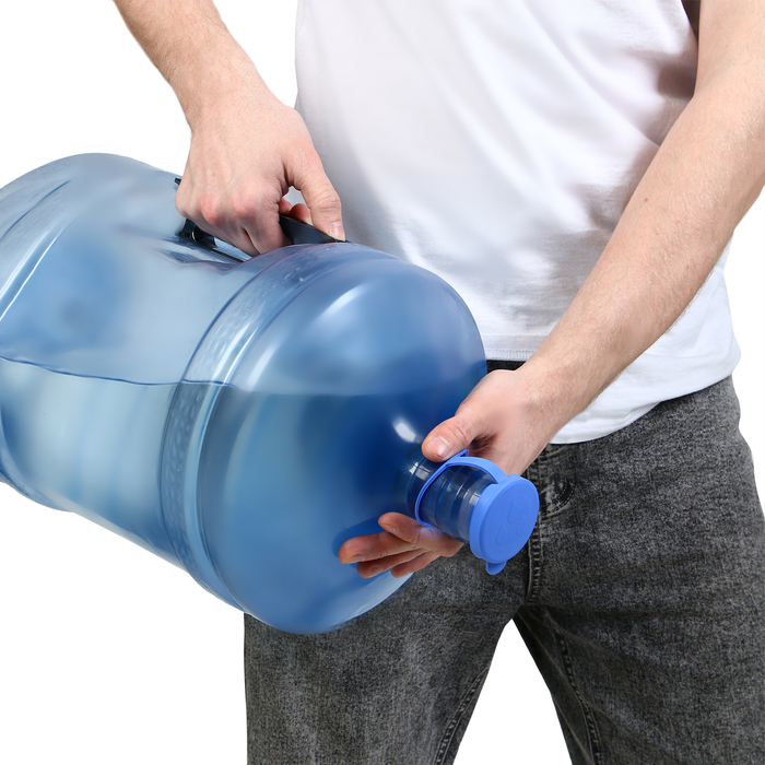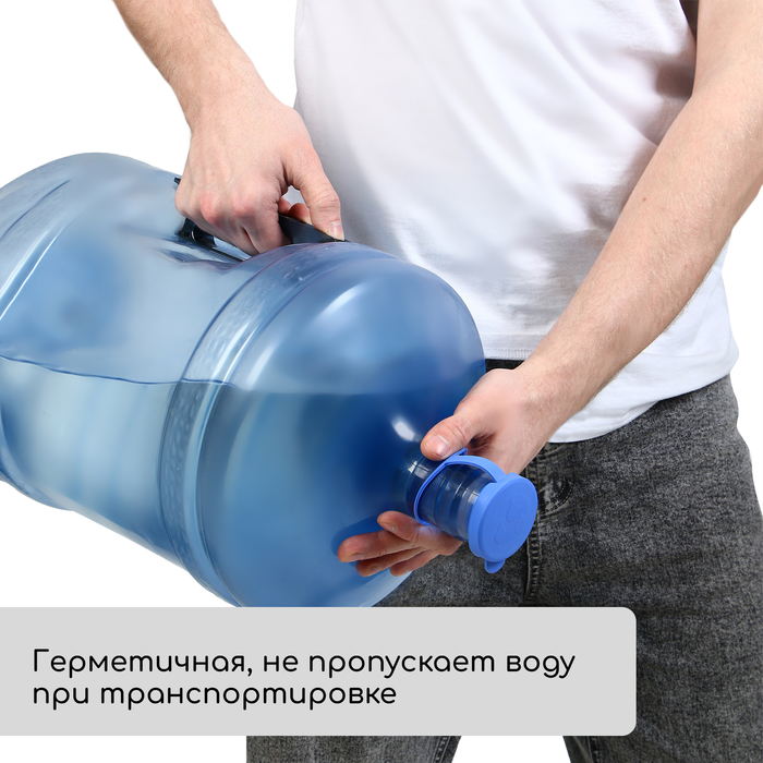Синяя крышка совместима с кулерными бутылями объемом 12,5 и 18,9 литра.