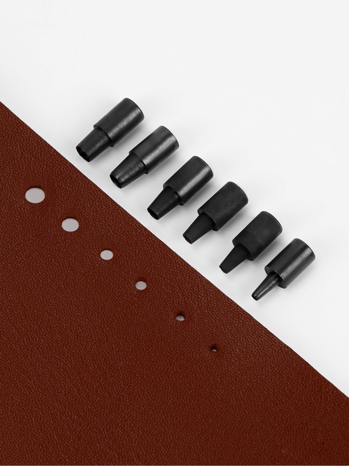 Вашему вниманию представлен инструмент для работы с кожей, который поможет создавать уникальные и качественные изделия. Этот комплект включает шесть сменных пуансонов диаметром от 1.5 до 4 мм, что позволяет воплотить в жизнь самые смелые идеи.
