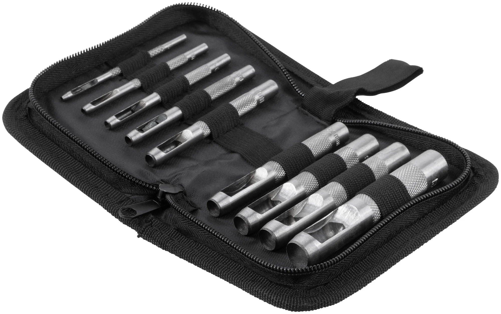 Пробойники поставляются в удобном нейлоновом чехле, упакованном в картонную коробку, что облегчает их хранение и транспортировку. Компактные габариты набора делают его идеальным для использования как в мастерской, так и в полевых условиях.