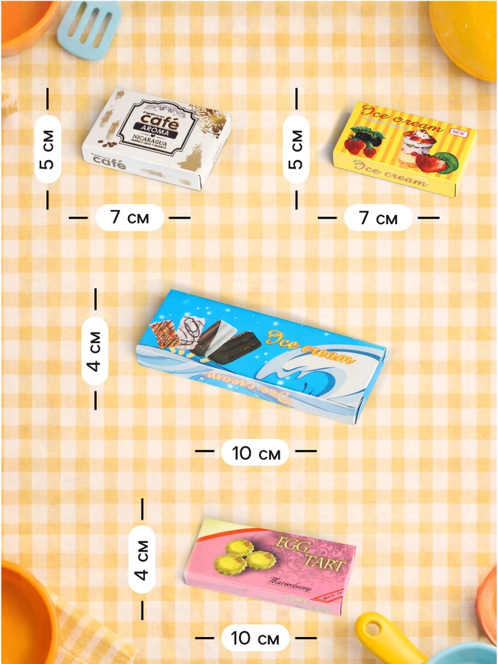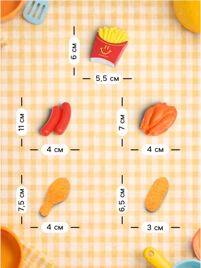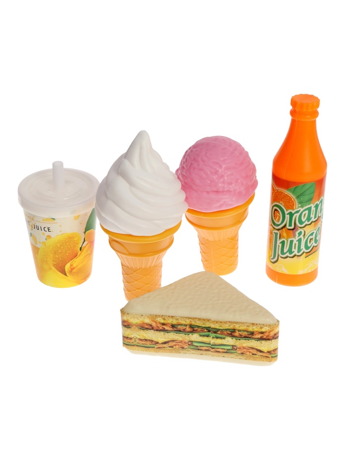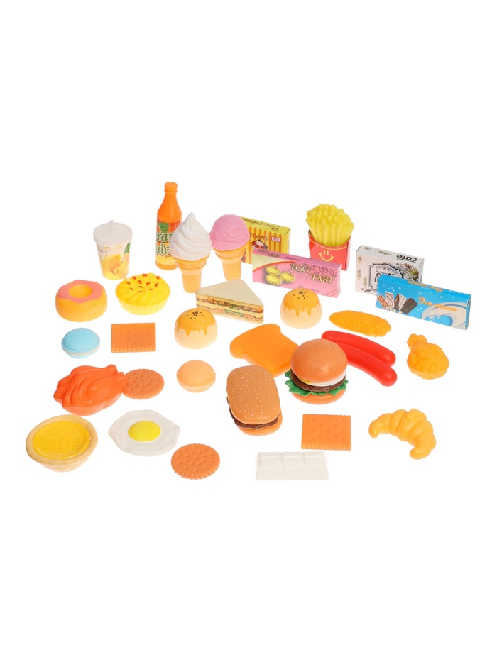 В набор входят различные продукты, сладости, напитки и блюда — всего 40 элементов, которые позволяют менять сценарии игры и развивать фантазию. Детям нравится рассматривать предметы, сортировать их, играть с ними дома или приглашать в игру друзей.