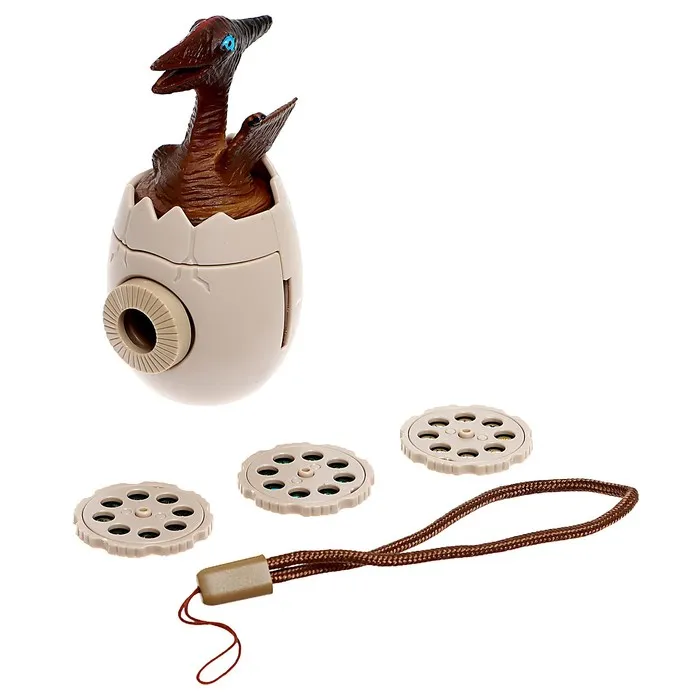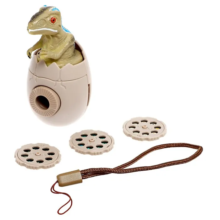 В набор входят проектор-фонарик в виде яйца с динозавриком и 3 слайда (24 цветные картинки).