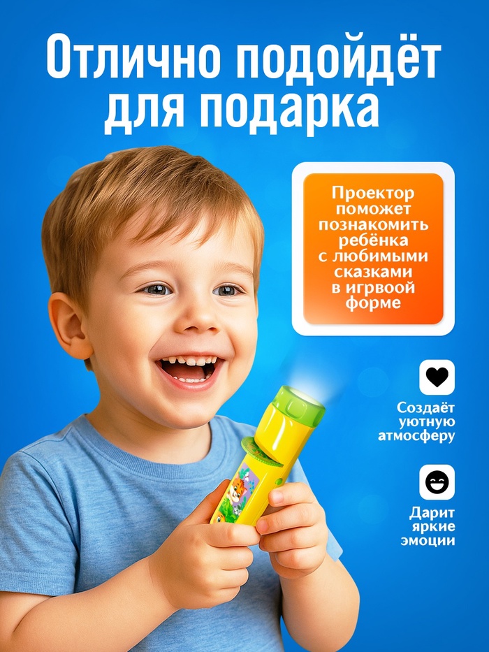 Проектор-фонарик «Любимые сказки» станет прекрасным началом для развития творческих способностей ребёнка.