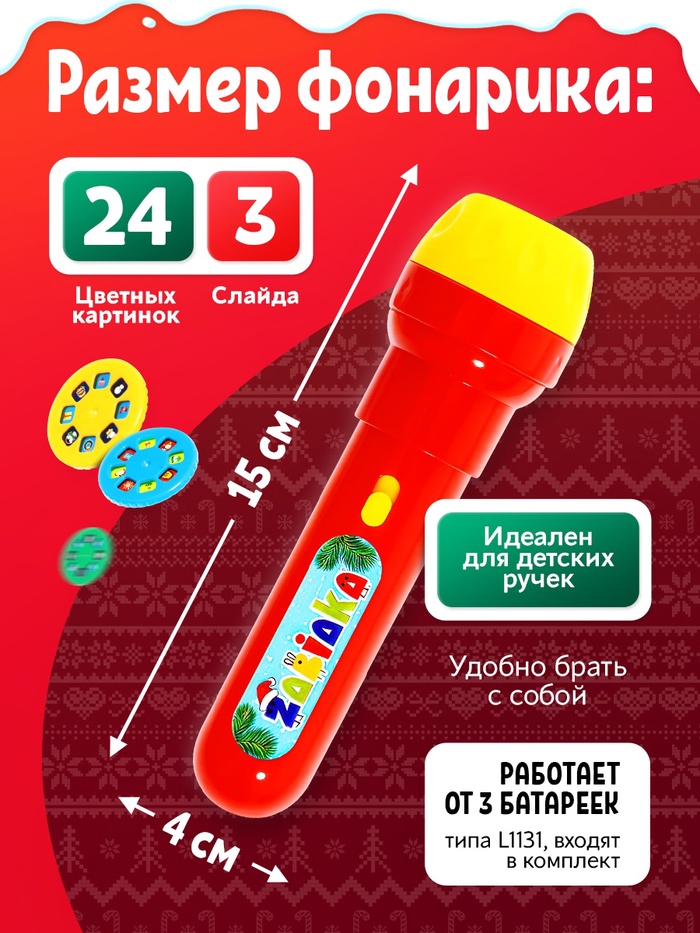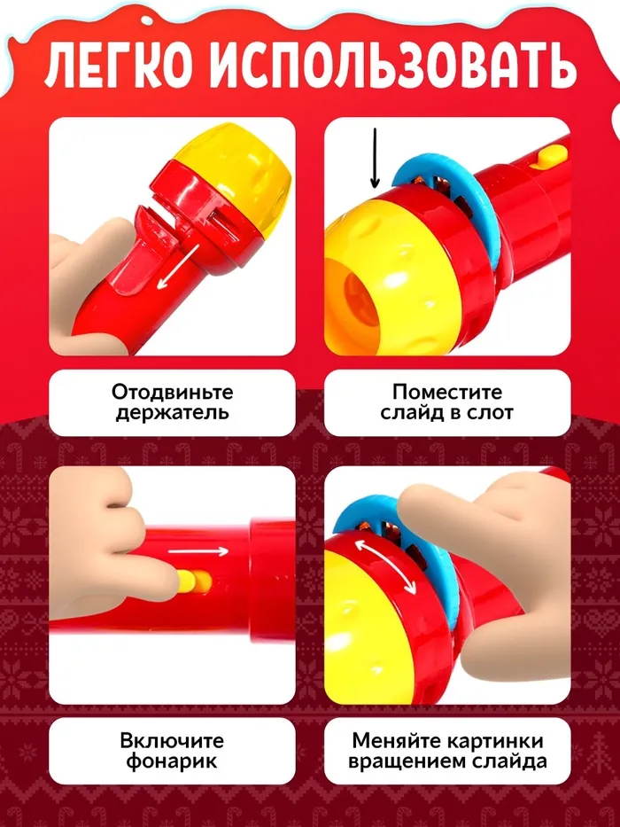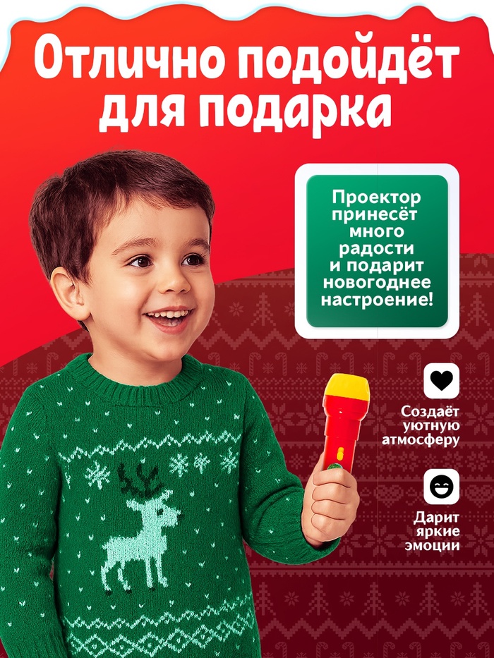 Проектор-фонарик с новогодней тематикой — то, что нужно для полезного и интересного досуга! Такой подарок поможет ребёнку скрасить ожидание Нового года, станет прекрасным началом для развития творческих способностей ребёнка.