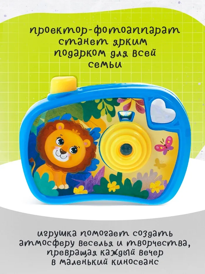 Проектор-фотоаппарат «Весёлые зверята» создан специально для малышей от 3 лет. Он объединяет элементы игры и визуального творчества, превращая обычную комнату в сказочное пространство.