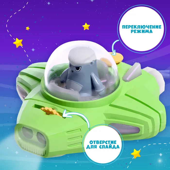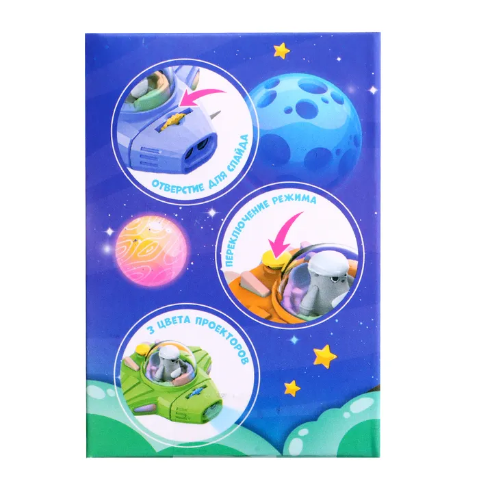 Необычный проектор в виде космического корабля привлечёт внимание трогательным дизайном и надолго займёт малыша. Игрушка научит создавать изображения, поможет развить усидчивость, воображение и абстрактное мышление.