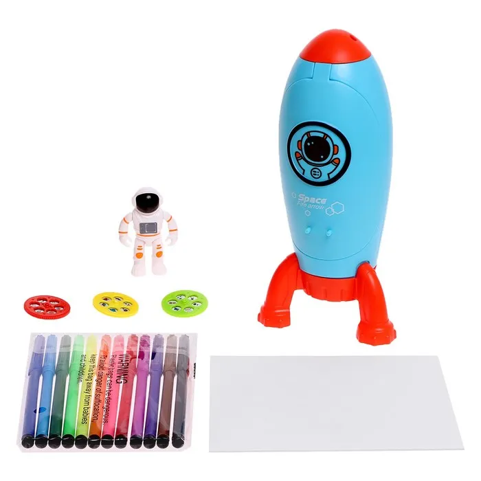 - В комплекте вы найдёте 12 фломастеров, 3 слайда (18 картинок) и фигурку космонавта.