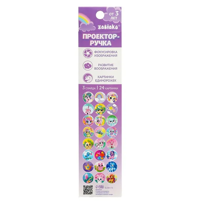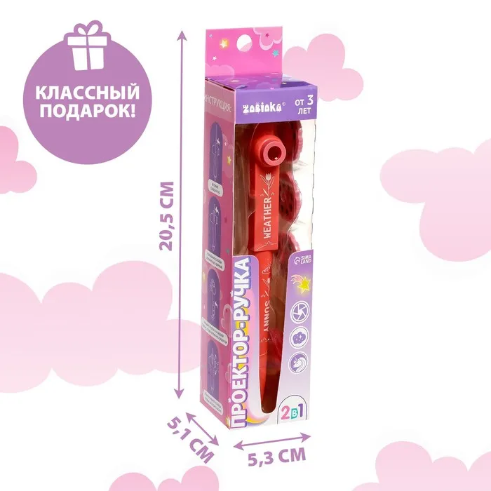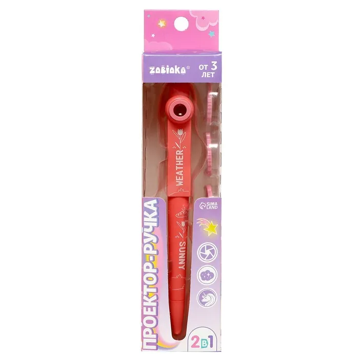 Проектор-ручка, свет, 3 слайда, 24 картинки, цвет розовый — Характеристики
