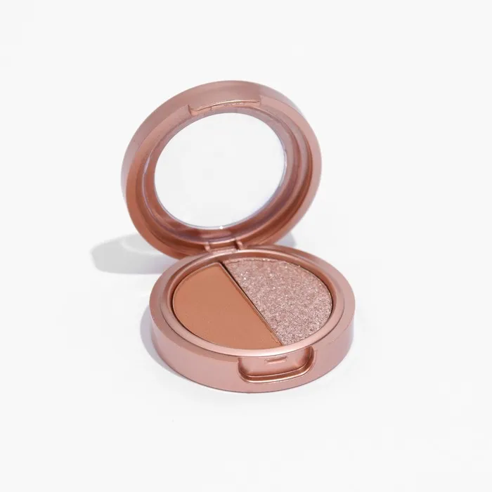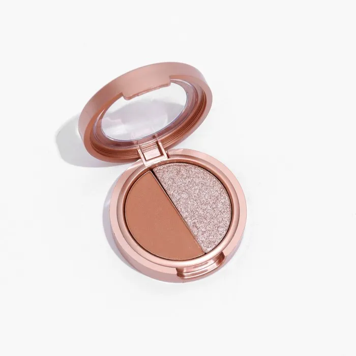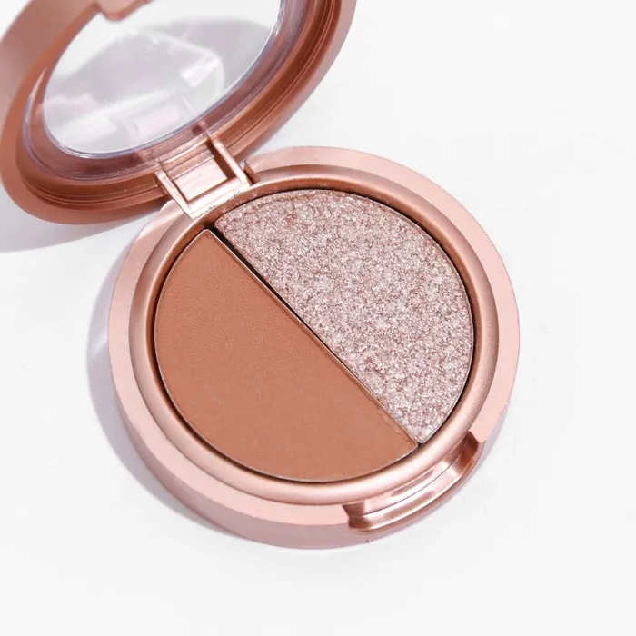 Палетка теней имеет удобную форму и хороший выбор цветов, в том числе блестящих. Тени хорошо пигментированы, не пылят, не скатываются, отлично тушуются и наносятся на веки.