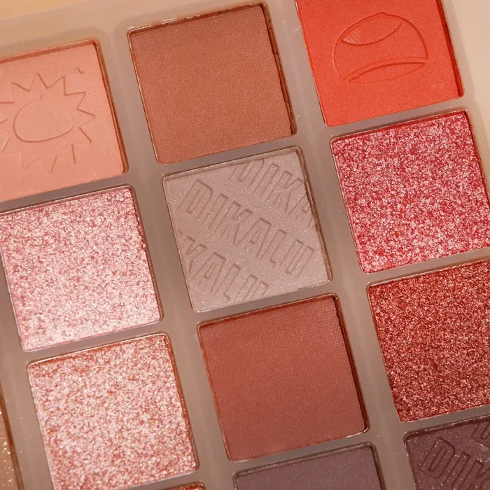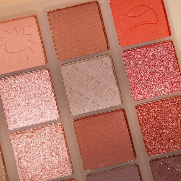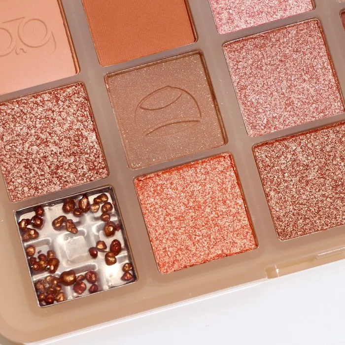 Палетка теней имеет удобную форму и хороший выбор цветов, в том числе блестящих. Тени хорошо пигментированы, не пылят, не скатываются, отлично тушуются и наносятся на веки.