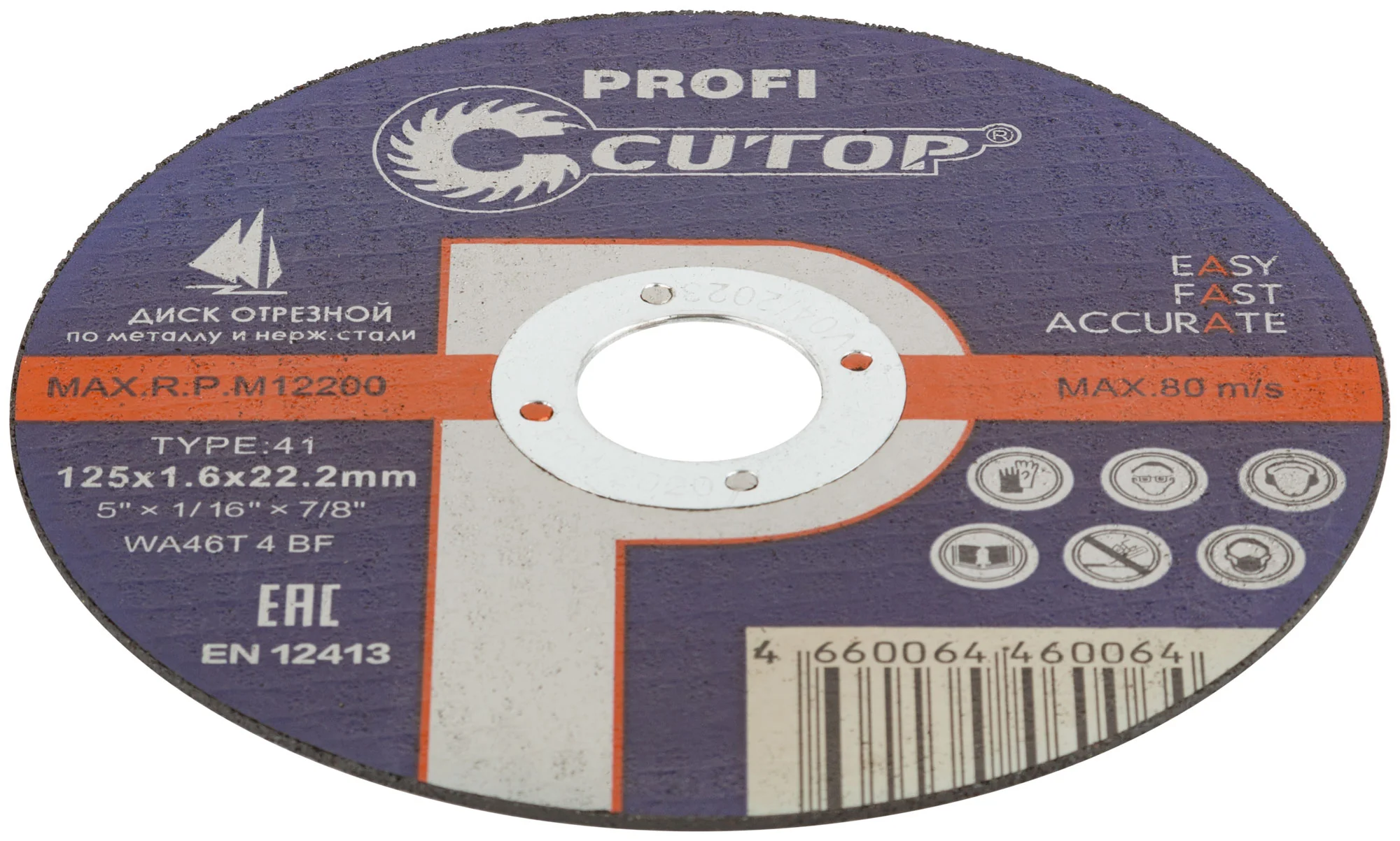 Профессиональный диск отрезной по металлу и нержавеющей стали Cutop Profi Т41-125 х 1,6 х 22,2 мм