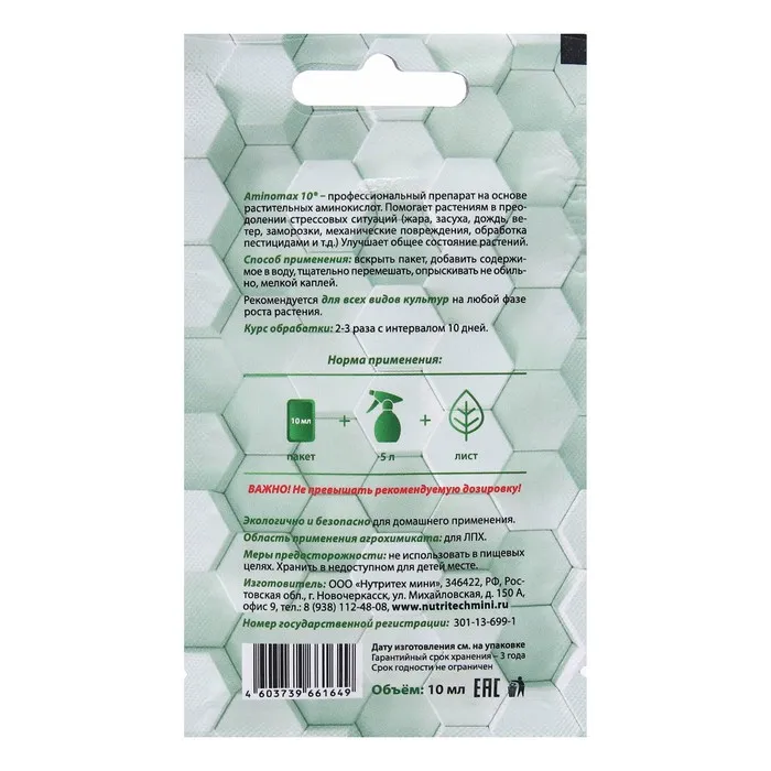 Профессиональный препарат для компенсации стрессовых воздействий. Aminomax 10 — единственный в своем роде продукт, со специально разработанной жидкой формулой, основанной на растительных аминокислотах. Специально подобранный состав аминокислот полностью усваивается и помогает растению эффективно справляется со стрессовыми ситуациями. Обладает высокой скоростью проникновения и внутренним системам растения. Активизирует процессы восстановления и роста растений.