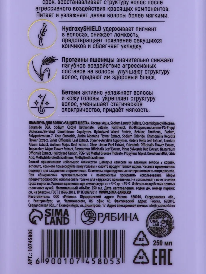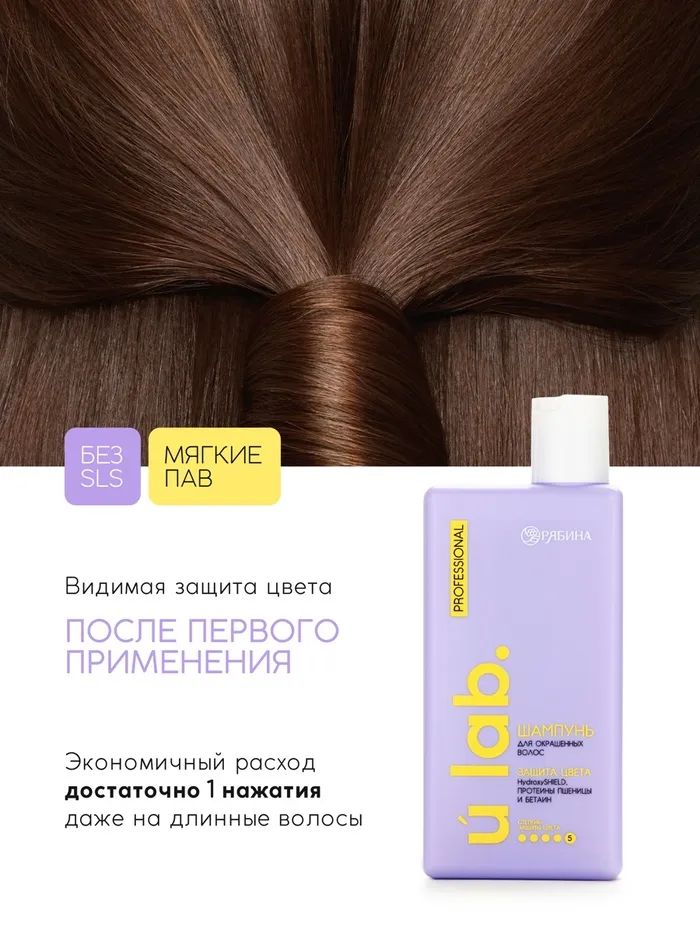 Профессиональный шампунь женский, для окрашенных волос с активным комплексом и скваланом, 250 мл ULAB — Характеристики
