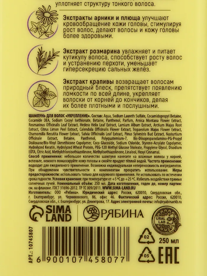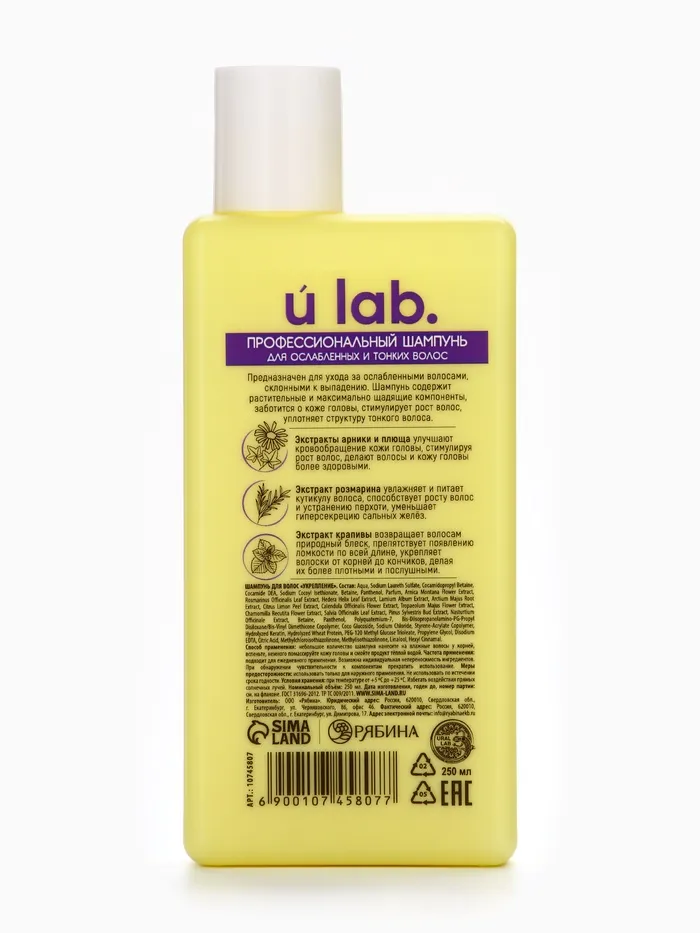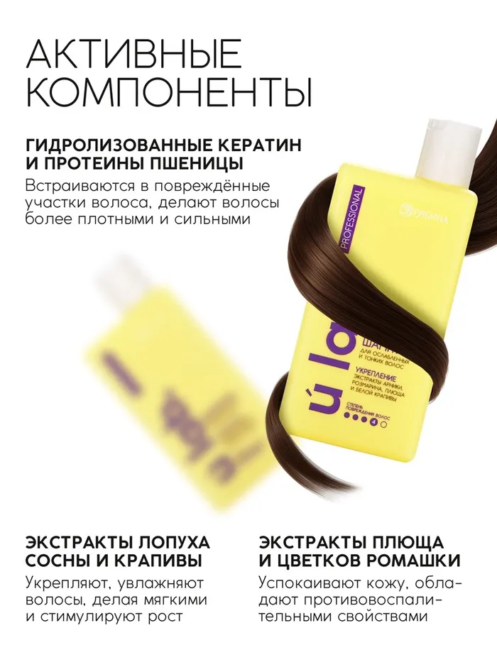 Профессиональный укрепляющий шампунь женский, для ломких волос с комплексом масел и экстрактов, 250 мл ULAB — Характеристики
