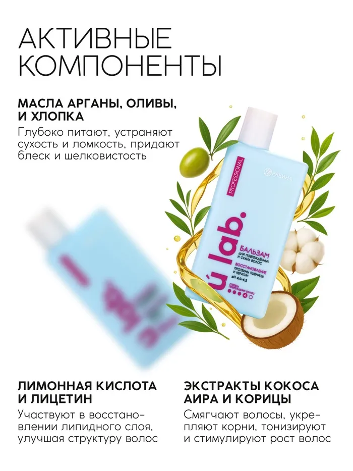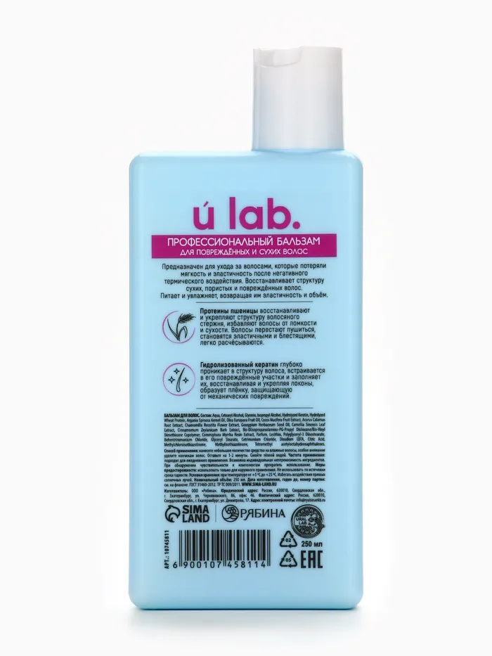 Профессиональный восстанавливающий бальзам для сухих и пористых волос с кератином и протеинами пшеницы, 250 мл ULAB — Характеристики