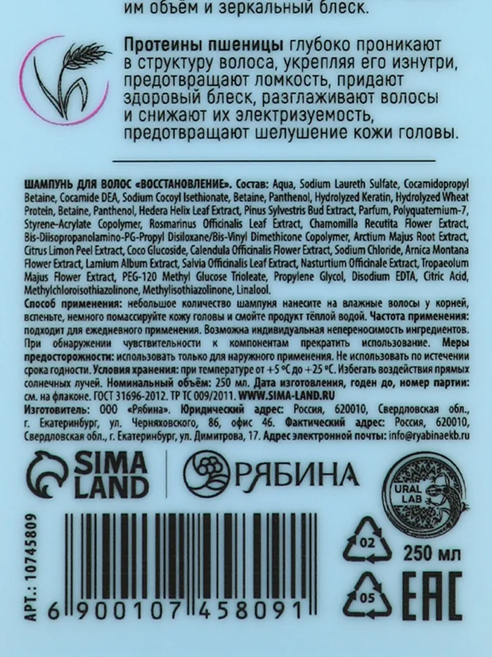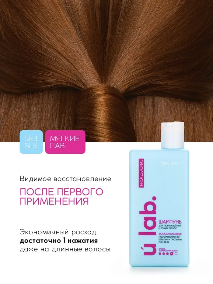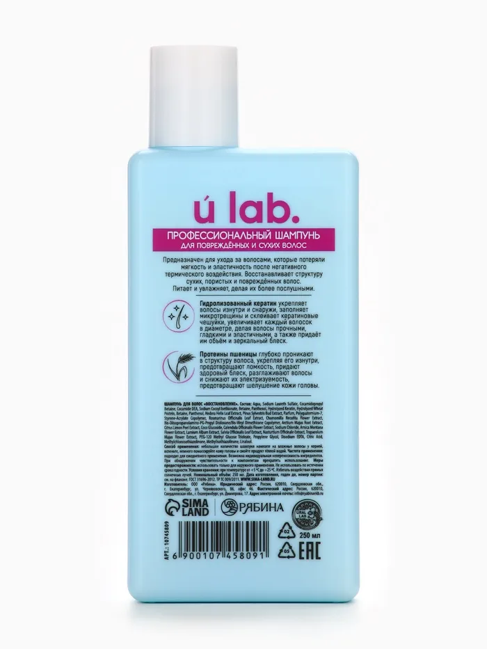 Профессиональный восстанавливающий шампунь женский, для сухих и пористых волос с кератином и протеинами пшеницы, 250 мл ULAB — Характеристики